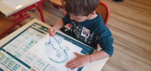 – Les maternelles et CP ont réalisé des petits parcours en utilisant des modes de déplacements d’animaux (sauter comme un kangourou, ramper comme un serpent…)