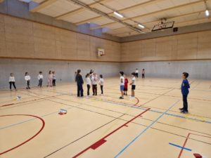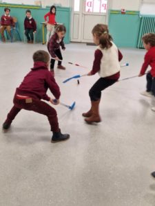 Les élèves de CE2, CM1 et CM2 profitent d’un cycle de Hockey en gymnase avec un intervenant extérieur.